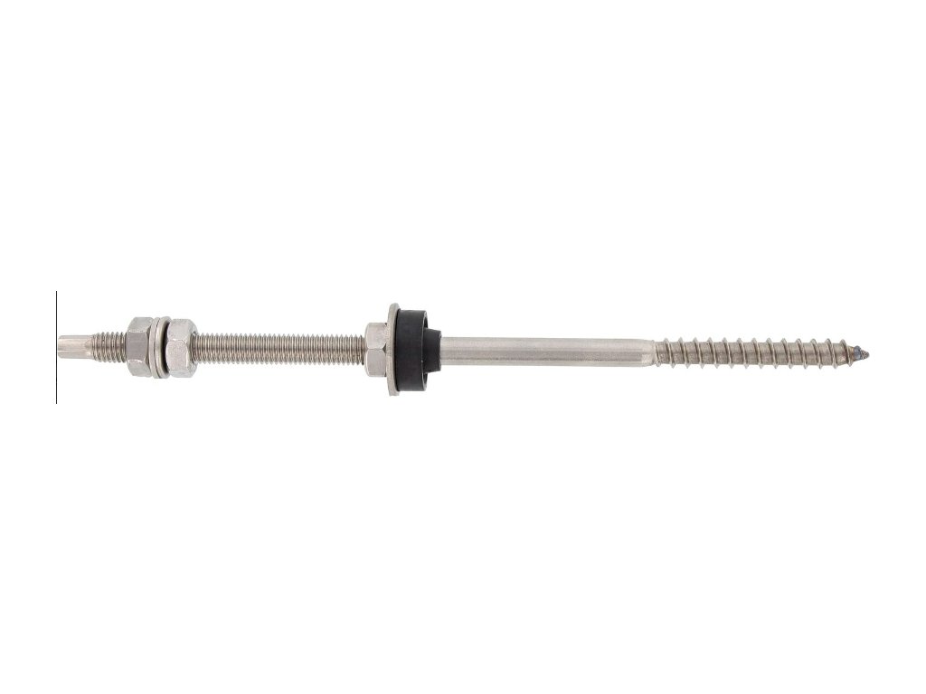 Kombivrut s dvojitým závitem M10x250 je speciálně navržený pro montáž hliníkových profilů na různé druhy střechových povrchů, což zahrnuje plechové střechy, kovové tašky a šindelové střechy. Použití tohoto vrutu zajišťuje pevné uchycení a stabilitu hliníkových profilů na výše zmíněných materiálech.